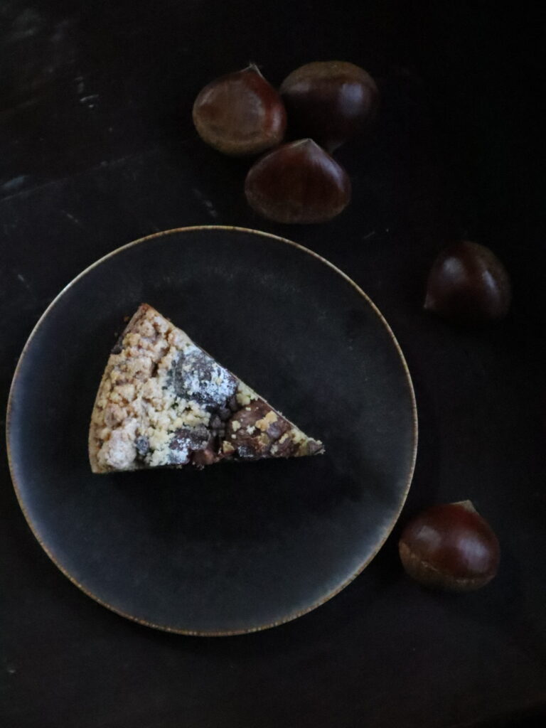 丹精込めた丹波栗の渋皮煮を使ったクランブルタルトの紹介です。