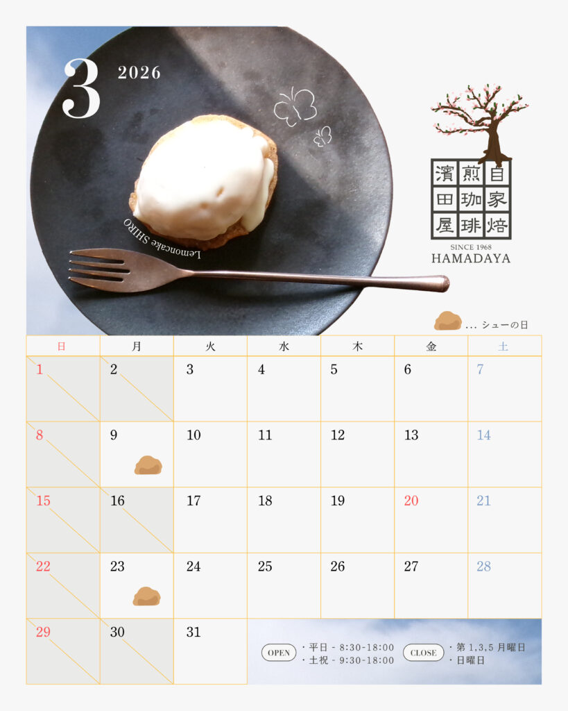 3月の営業カレンダーです✨🍋